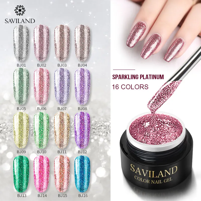 Saviland Shining Platinum Gel Lacquer 10ml UV/LED Gel Nail Polish Shimmer Glitter Color Coat Soak Off Fingernail Gel Varnish